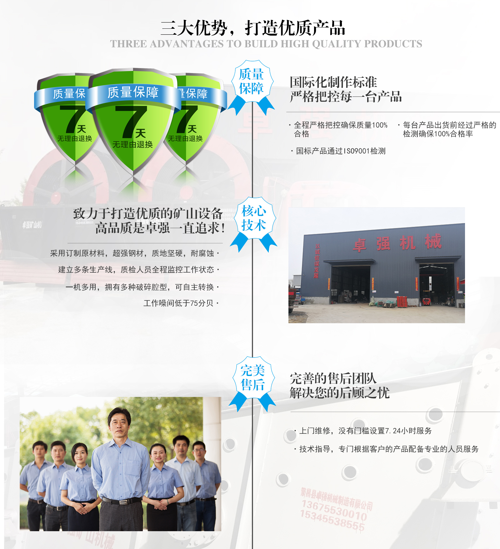 繁昌縣卓強機械制造有限公司是一家以生產品質礦山設備為主,集設計、生產、銷售、售后為一體的廠家。公司位于安徽省蕪湖市繁昌縣高速入口3千米處!主營產品:洗砂設備、制砂設備、破碎設備、輸送設備、顎式破碎機及全套配件、圓錐機配件等全套礦山設備!卓強嚴格奉行用戶至上、用心服務的方針。以全天候24小時,誠心誠意為用戶服務的經營理念,得到了廣大用戶的信賴和支持。熱烈歡迎廣大用戶前來我廠參觀考察!如有需要請及時與我們聯系!我們熱忱歡迎您的到來!